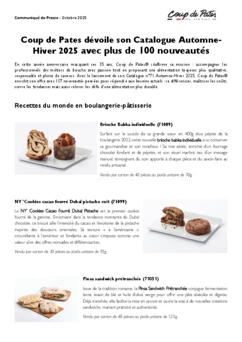 responsable et pleine de saveurs. Avec le lancement de son Catalogue n°71 Automne-Hiver 2025, Coup de Pates®