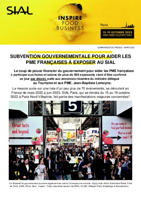Le coup de pouce financier du gouvernement pour aider les PME françaises à participer aux foires et salons de plus de 500 exposants vient d’être confirmé ce jour par décret, suite aux annonces récentes du ministre délégué au Tourisme et aux PME, Jean-Baptiste Lemoyne.