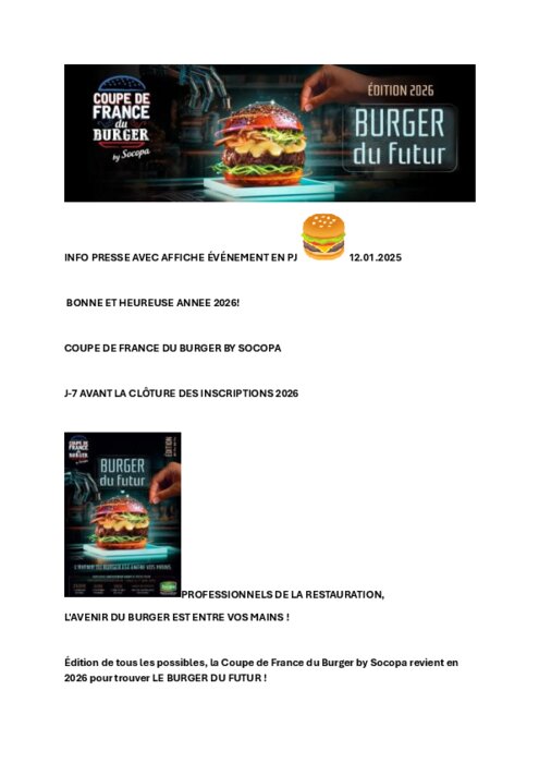 Coupe de France du Burger, bientôt la clôture des inscriptions 2026