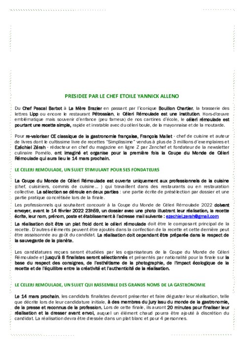 Métiers 01 février 2022 - 12:11 Du Chef Pascal Barbot à La Mère Brazier en passant par l’iconique Bouillon Chartier, la brasserie des lettres Lipp ou encore le restaurant Pétrossian, le Céleri Rémoulade est devenu une institution. PDF (198 Ko) Télécharger