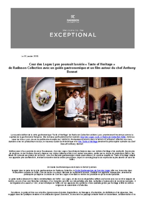 Cour des Loges Lyon poursuit la série « Taste of Heritage »
