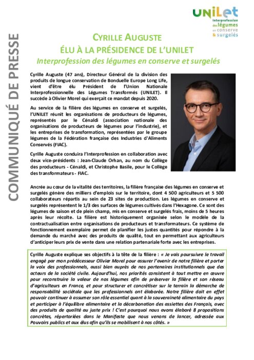 Au service de la filière des légumes en conserve et surgelés, l’UNILET réunit les organisations de producteurs de légumes, représentés par le Cénaldi (association nationale des organisations de producteurs de légumes pour l’industrie), et les entreprises de transformation, représentées par le groupe légumes de la Fédération française des Industries d'Aliments Conservés (FIAC).