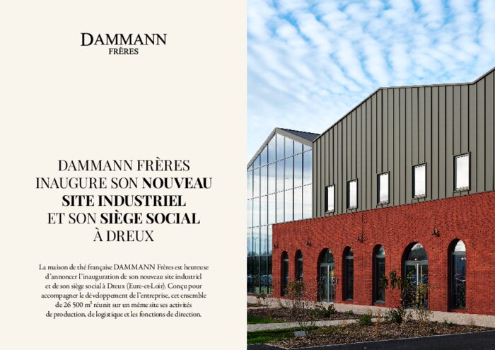 La maison de thé française Dammann Frères est heureuse d’annoncer l’inauguration de son nouveau site industriel et de son siège social à Dreux (Eure-et-Loir). Conçu pour accompagner le développement de l’entreprise, cet ensemble de 26 500 m² réunit sur un même site ses activités de production, de logistique et les fonctions de direction.