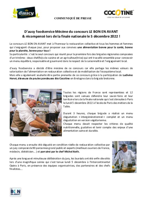 D’aucy foodservice mécène du concours LE BON EN AVANT 2022 et récompensé lors de la finale