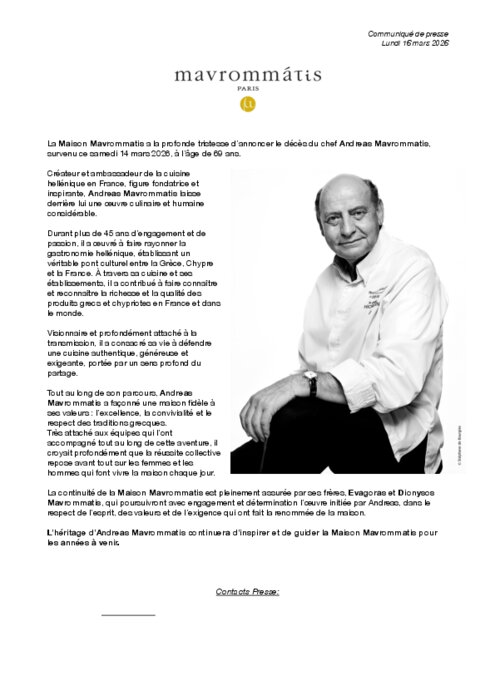 Décès du chef Andreas Mavrommatis