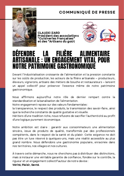 Défense de la filière alimentaire artisanale (Les Artisans du Goût)