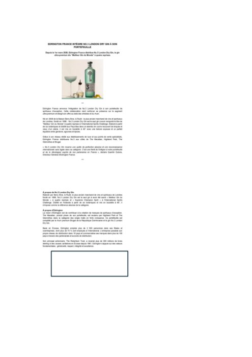 Edrington France renforce son portefeuille en intégrant le NO.3 London Dry Gin, référence incontournable de la catégorie premium. Cette arrivée stratégique illustre la volonté du groupe de consolider sa présence sur le segment des spiritueux haut de gamme. Distillé au cœur de Londres, ce gin se distingue par son profil aromatique équilibré et sa précision botanique. Une nouvelle étape dans le développement d’une offre toujours plus sélective et exigeante.