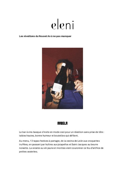 Le bar à vins basque s’invite en mode cool pour un réveillon sans prise de tête : tables hautes, bonne humeur et bouteilles qui défilent. Au menu, 13 tapas festives à partager, de la cecina de León aux croquettes truffées, en passant par huîtres aux jalapeños et Saint-Jacques au beurre noisette. La volaille au vin jaune et morilles vient couronner ce feu d’artifice de petites assiettes.