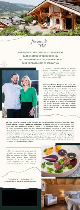 L’hôtel, le restaurant et le spa pourront accueillir de nouveau les visiteurs au début du printemps 2025. L’occasion rêvée pour profiter d’une montagne ensoleillée, et de tous ses produits de saison interprétés avec brio par le Chef triplement étoilé Emmanuel Renaut et ses équipes.