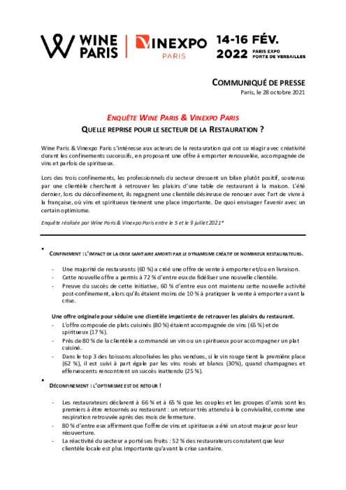 Wine Paris & Vinexpo Paris s’intéresse aux acteurs de la restauration qui ont su réagir avec créativité durant les confinements successifs, en proposant une offre à emporter renouvelée, accompagnée de vins et parfois de spiritueux.