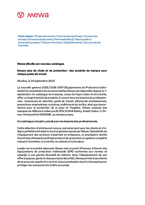 Equipement de Protection Individuelle : Mewa dévoile son nouveau catalogue