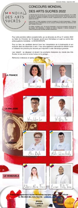 Métiers 28 septembre 2022 - 15:54 Pour cette première édition exceptionnelle, qui se déroulera du 28 au 31 octobre au Salon du Chocolat, les 16 équipes auront pour thématique un sujet au centre des préoccupations mondiales : LA BIODIVERSITE. PDF (659 Ko) Télécharger