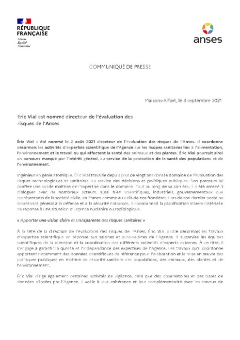 Métiers 03 septembre 2021 - 10:59 "Apporter une vision claire et transparente des risques sanitaires " PDF (911 Ko) Télécharger