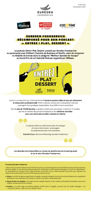 Eureden Foodservice récompensé pour son podcast Entrez, Plat, Dessert