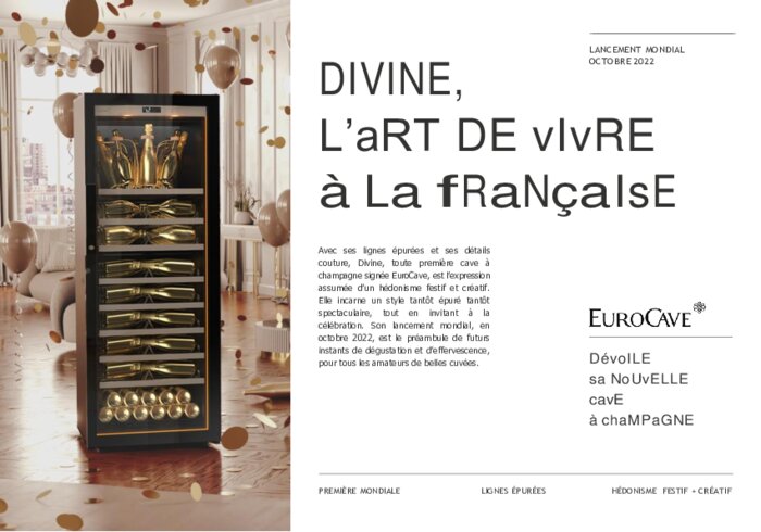 Fournisseurs 11 octobre 2022 - 08:40 EuroCave, l'inventeur de la cave à vin, dévoile en exclusivité sa nouvelle cave à champagne "Divine", une première mondiale 100% made in France. PDF (484 Ko) Télécharger