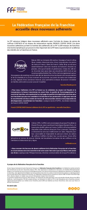 coiffure COIFF&CO et du réseau de restauration rapide, FRENCH COFFEE SHOP. Ces deux