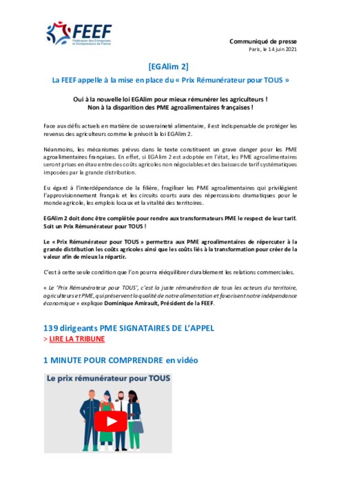 La FEEF appelle à la mise en place du « Prix Rémunérateur pour TOUS »