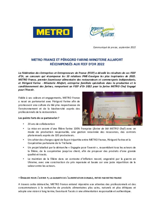 Métiers 21 septembre 2022 - 09:55 La Fédération des Entreprises et Entrepreneurs de France (FEEF) a dévoilé les résultats de ses FEEF d’Or, un concours qui récompense les 10 relations PME-Enseigne les plus inspirantes de 2022. PDF (315 Ko) Télécharger
