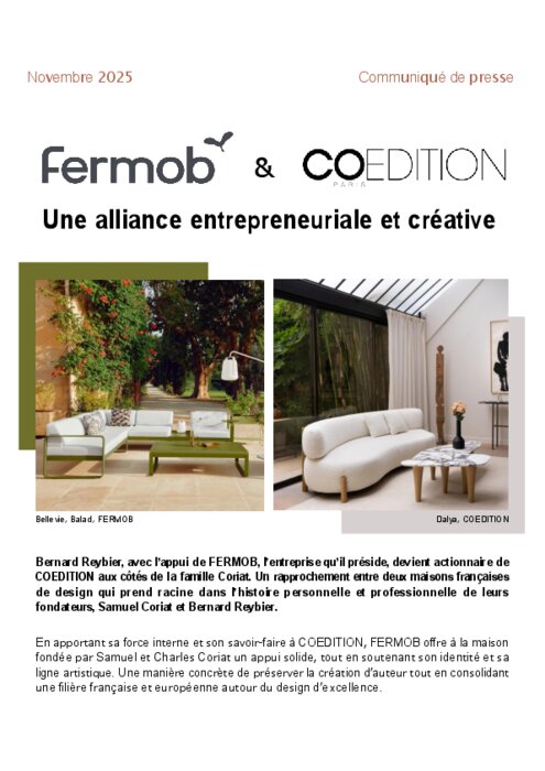 Après le rachat de l'entreprise TipToe en 2024, le groupe Fermob poursuit sa stratégie de diversification mais cette alliance prend d'abord racine dans l’histoire personnelle et professionnelle de Bernard Reybier avec Samuel Coriat, le fondateur de Coedition.