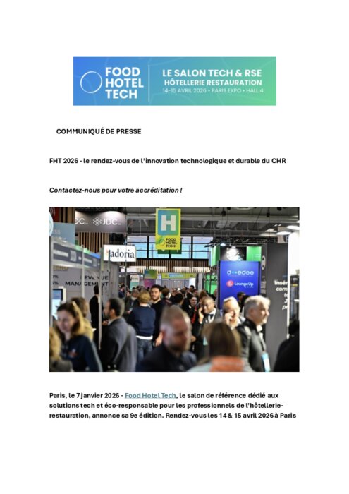 Food Hotel Tech, le salon de référence dédié aux solutions tech et éco-responsable pour les professionnels de l’hôtellerie-restauration, annonce sa 9e édition. Rendez-vous les 14 & 15 avril à Paris Expo Porte de Versailles, en Hall 4, pour une édition qui change de dimension : plus grande, plus structurée, plus ambitieuse.