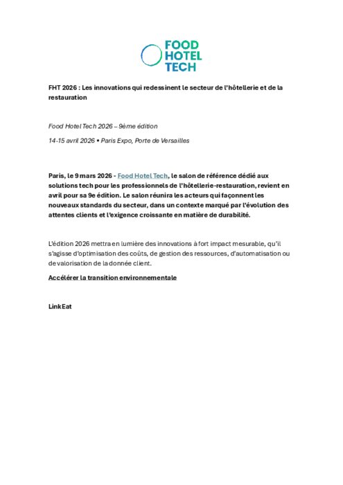 Food Hotel Tech, le salon de référence dédié aux solutions tech pour les professionnels de l’hôtellerie-restauration, revient en avril pour sa 9e édition. Le salon réunira les acteurs qui façonnent les nouveaux standards du secteur, dans un contexte marqué par l’évolution des attentes clients et l’exigence croissante en matière de durabilité.