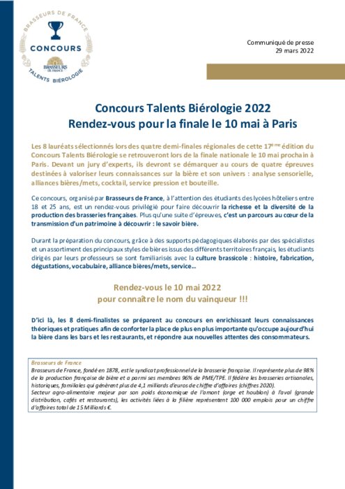 La finale du Concours Talents Biérologie 2022 se tiendra le 10 mai prochain