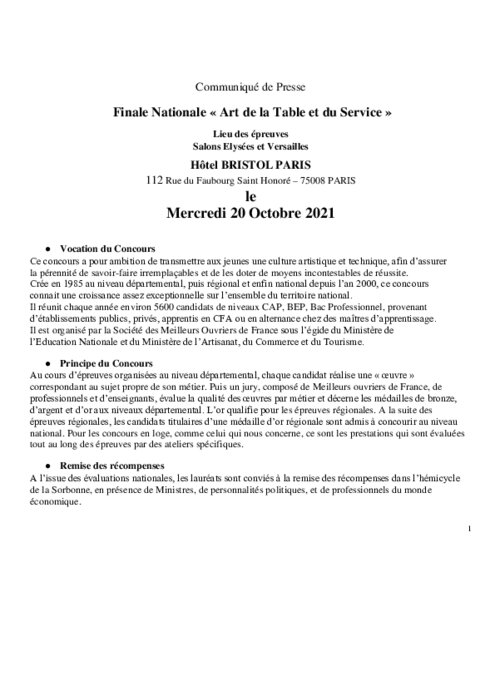 Métiers 04 octobre 2021 - 18:07 Ce concours a pour ambition de transmettre aux jeunes une culture artistique et technique, afin d’assurer la pérennité de savoir-faire irremplaçables et de les doter de moyens incontestables de réussite. PDF (162 Ko) Télécharger