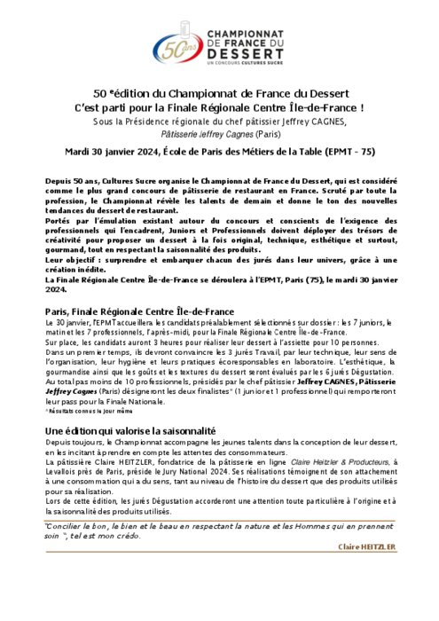 Portés par l’émulation autour du concours et conscients de l’exigence des professionnels qui l’encadrent, Juniors et Professionnels doivent déployer des trésors de créativité pour proposer un dessert à la fois original, technique, esthétique et surtout, gourmand, tout en respectant la saisonnalité des produits.