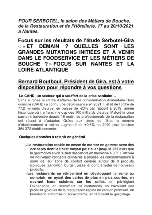 Métiers 07 octobre 2021 - 16:09 Et demain, quelles sont les grandes mutations initiées et à venir dans le foodservice et les métiers de bouche ? PDF (185 Ko) Télécharger
