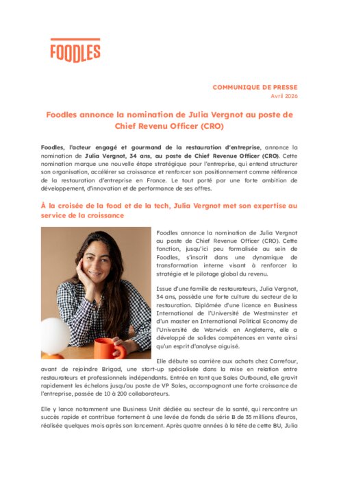 Foodles, annonce la nomination de Julia Vergnot, 34 ans, au poste de Chief Revenue Officer (CRO). Cette nomination marque une nouvelle étape stratégique pour l’entreprise, qui entend structurer son organisation, accélérer sa croissance et renforcer son positionnement comme référence de la restauration d’entreprise en France. Le tout porté par une forte ambition de développement, d’innovation et de performance de ses offres.