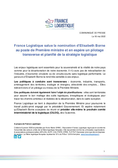 Métiers 18 mai 2022 - 15:42 Les enjeux logistiques sont essentiels pour la souveraineté et la vitalité de notre pays comme pour la décarbonation de notre économie. PDF (148 Ko) Télécharger