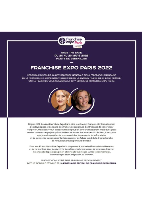 Le salon de la Fédération française de la franchise, organisé par Reed Expositions, est le moment privilégié qui permet la rencontre de plus de 35 000 investisseurs, créateurs d’entreprise et commerçants avec les dirigeants de 500 enseignes françaises et internationales.