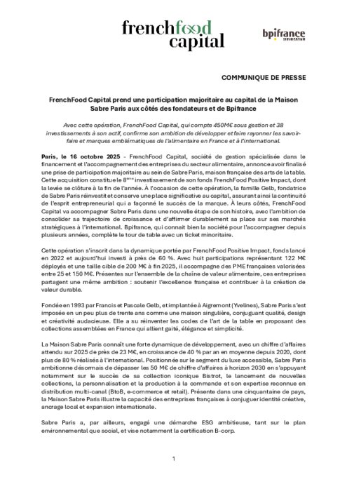 Avec cette opération, FrenchFood Capital, qui compte 450 M€ sous gestion et 38 investissements à son actif, confirme son ambition de développer et faire rayonner les savoir-faire et marques françaises à fort potentiel, en France et à l’international.