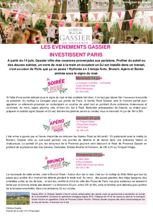 Fournisseurs 13 juin 2023 - 10:14 Profiter des rooftop ensoleillés et des afterwork chaleureux, un verre de rosé à la main, dans une ambiance DJ set ou vinyles, c’est la promesse d’une entrée dans l’été réussie par Gassier. PDF (293 Ko) Télécharger