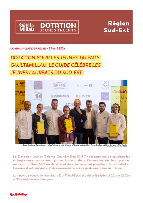 Gault&Millau encourage l'entrepreneuriat à travers la Dotation Jeunes Talents de la région Sud-Est