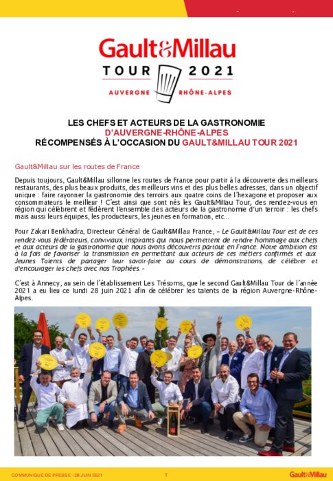 C’est à Annecy, au sein de l’établissement Les Trésoms, que le second Gault&Millau Tour de l’année 2021 a eu lieu ce lundi 28 juin 2021 afin de célébrer les talents de la région Auvergne-RhôneAlpes.