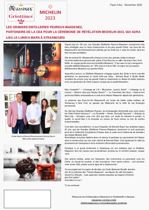 Les Grandes Distilleries Peureux-Massenez : partenaire officiel de la cérémonie Michelin 2023