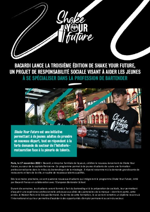 Le Groupe Bacardi lance Shake your Future, son programme de formation à la profession de bartender