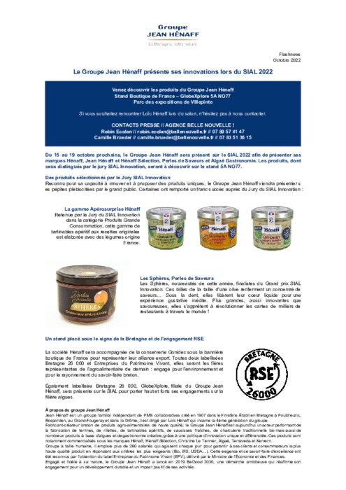 Fournisseurs 11 octobre 2022 - 11:54 Hénaff, entreprise familiale basée à Pouldreuzic dans le Finistère : des produits bretons de qualité. PDF (214 Ko) Télécharger