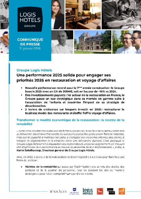 Leader de la restauration avec plus de 1 700 restaurants sur l’ensemble du territoire et représentant 45% des restaurants d’hôtels depuis l’intégration des établissements Teritoria en septembre 2025, le Groupe Logis Hôtels entend jouer un rôle moteur dans la décarbonation de la filière. Selon les résultats d’un bilan carbone réalisé en interne, 43 % de l’empreinte du Groupe provient de l’alimentation. Le Groupe a ainsi lancé l’an dernier l’indicateur Act-Eco Restaurant, déjà adopté par plus de la moitier de son réseau. Une mesure de progrès qui s’appuie sur six axes clés — dont l’approvisionnement responsable, la gestion des déchets et la maîtrise des consommations d’eau et d’énergie — afin d’accompagner les restaurateurs dans la mise en œuvre de pratiques plus durables, au service de leur performance économique.