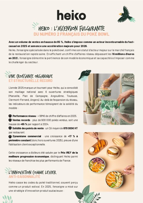 L'année 2025 marque un tournant pour Heiko, qui a consolidé son maillage national avec 6 ouvertures stratégiques (Marseille, Plan de Campagne, Angoulême, Toulouse, Clermont-Ferrand, Angers). Au-delà de l’expansion du réseau, les indicateurs de performance témoignent de la solidité du modèle. Cette croissance a d’ailleurs été saluée par le Prix IREF de la meilleure progression économique, distinguant Heiko parmi les réseaux de franchise les plus performants de France.