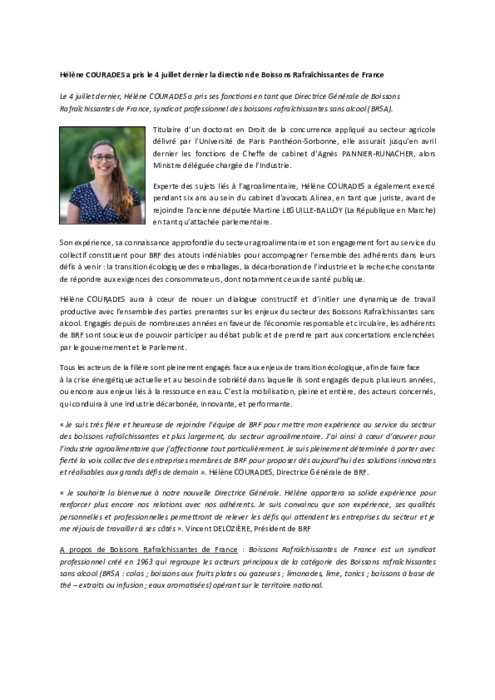 Experte des sujets liés à l’agroalimentaire, Hélène COURADES a également exercé pendant six ans au sein du cabinet d'avocats Alinea, en tant que juriste, avant de rejoindre l’ancienne députée Martine LEGUILLE-BALLOY (La République en Marche) en tant qu’attachée parlementaire.