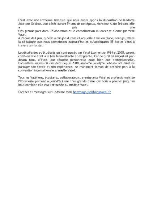 Les étudiantes et étudiants qui sont passés par Vatel Lyon entre 1984 et 2008, savent combien elle était à la fois bienveillante et exigeante. Car ce qu’il lui importait par-dessus tout, c’était leur réussite personnelle aussi bien que professionnelle.