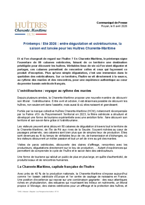 Depuis plusieurs années, la Charente-Maritime propose une nouvelle manière de découvrir son littoral : l’ostréitourisme. Entre avril et octobre, il est désormais possible de découvrir les huîtres, non seulement dans l’assiette, mais aussi là où elles naissent et grandissent.