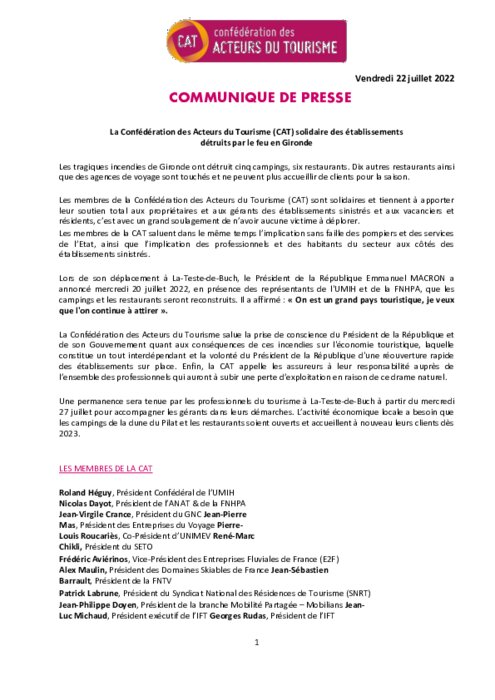 Métiers 22 juillet 2022 - 10:01 Les tragiques incendies de Gironde ont détruit cinq campings, six restaurants. Dix autres restaurants ainsi que des agences de voyage sont touchés et ne peuvent plus accueillir de clients pour la saison. PDF (156 Ko) Télécharger