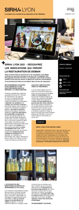 Métiers 01 septembre 2021 - 15:12 Du 23 au 27 septembre 2021, les professionnels du food service se donnent rendez-vous à Eurexpo à Lyon pour la 20e édition du SIRHA LYON. PDF (462 Ko) Télécharger