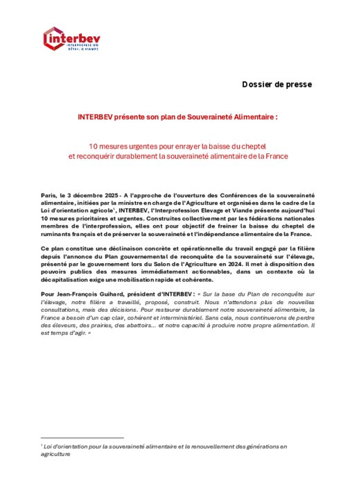 INTERBEV : 10 mesures urgentes pour reconquérir la souveraineté alimentaire