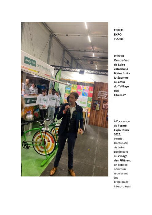 À l’occasion de Ferme Expo Tours 2025, Interfel Centre-Val de Loire participera au Village des Filières, un espace commun réunissant les principales interprofessions agricoles régionales autour d’une ambition partagée : valoriser la diversité et la complémentarité des productions du Centre-Val de Loire.