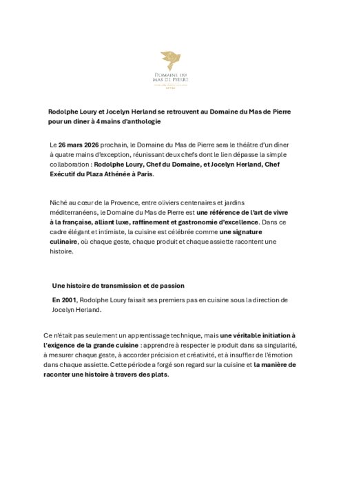 Niché au cœur de la Provence, entre oliviers centenaires et jardins méditerranéens, le Domaine du Mas de Pierre est une référence de l’art de vivre à la française, alliant luxe, raffinement et gastronomie d’excellence. Dans ce cadre élégant et intimiste, la cuisine est célébrée comme une signature culinaire, où chaque geste, chaque produit et chaque assiette racontent une histoire.