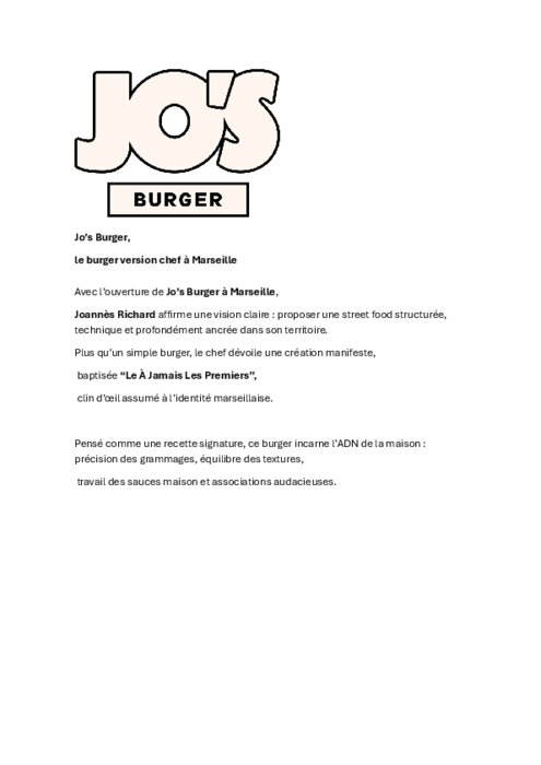 Avec l’ouverture de Jo’s Burger à Marseille, Joannès Richard affirme une vision claire : proposer une street food structurée, technique et profondément ancrée dans son territoire. Plus qu’un simple burger, le chef dévoile une création manifeste, baptisée “Le À Jamais Les Premiers”, clin d’œil assumé à l’identité marseillaise.
